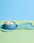 Designed with raised edges to prevent food or water from spilling out, and equipped with suction cups underneath to keep it securely in place during mealtime.